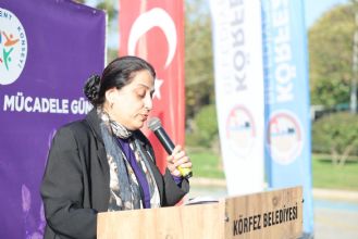 Programda ilk olarak konuşan Körfez Kent Konseyi Kadın Kolları Başkanı Zehra Coşkun Salih, “Şiddete sessiz kalmak, onu kabullenmek demektir. Biz bugün burada kadınlarımızın yanında olduğumuzu, onların sesine ses olduğumuzu göstermek için buluştuk. Şiddetin olmadığı, kadınların özgürce yaşadığı bir Körfez için hep birlikte çalışmaya devam edeceğiz” dedi.