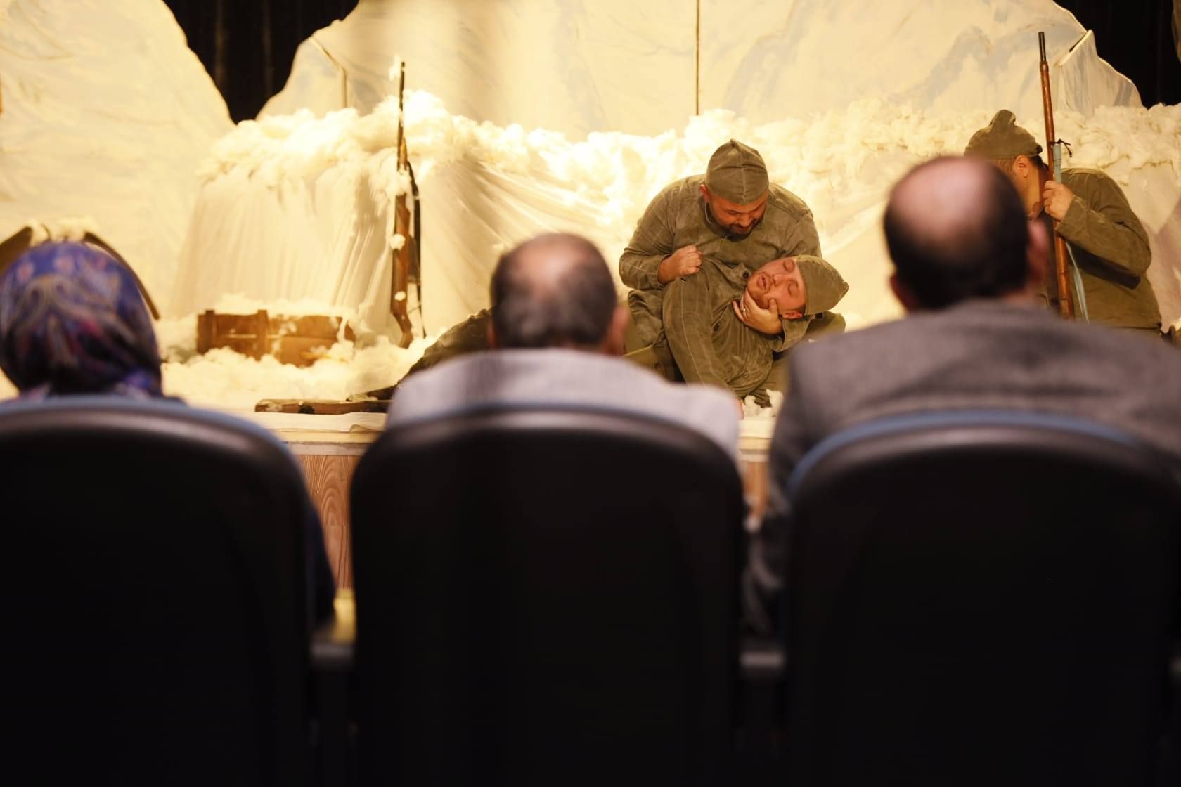 Tütünçiftlik Kültür Merkezi’nde sahnelenen oyuna oyuna izleyiciler de ilgi gösterdi. Oyunda, Allahuekber Dağları’nda Sarıkamış Harekatı sırasında vatan uğruna canlarını feda eden kahraman Mehmetçiklerin hikayesi duygu dolu bir şekilde sahneye taşındı. Vatan sevgisiyle dolup taşan askerlerin zorlu kış şartlarında verdiği mücadele, izleyicilere derin bir hüzün ve gurur yaşattı.