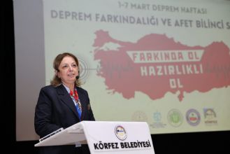 Körfez Kaymakamı Uğur Kalkar da deprem gerçeğini unutmadan hareket edilmesi gerektiğinin altını çizerek, güvenli bir gelecek için çalışmaların kararlılıkla sürdürüldüğünü belirtti. Konuşmaların ardından Kocaeli Üniversitesi Öğretim Üyesi Prof. Dr. Fadime Sertçelik tarafından sunum gerçekleştirildi. Sertçelik’in konuşmasının ardından kendisine plaket takdim edildi.