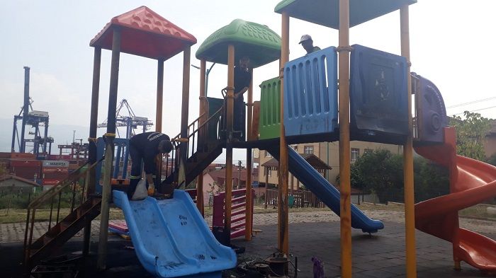 Körfez Kirazlıyalı Mahallesi’nde bulunan Nasrettin Hoca Çocuk Parkı içerisindeki oyun grupları, kimliği belirsiz kişi veya kişiler tarafından yakılarak zarar görmüş, kullanılmaz hale gelmişti. Körfez Belediyesi ekipleri de parktaki oyun grubunun yenilenmesi için hemen çalışma başlattı. Plastik olan oyun gruplarının zarar gören kısımları tamamen söküldü.
