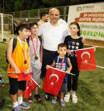 Başkan Şener Söğüt, “Geçtiğimiz yıl da büyük coşkuyla Zafer Kupamızı gerçekleştirmiştik. Bugün de görüyoruz ki; artık her yıl sizlerle birlikte bu anlamlı günde bu güzel turnuvayı yapacağız. Şimdi çocuklarımız için tesislerimizin sayısını da çoğaltıyoruz. Her şey çocuklarımızın geleceği için” dedi. Başkan Şener Söğüt’ün konuşmasının ardından kupa törenine geçildi.